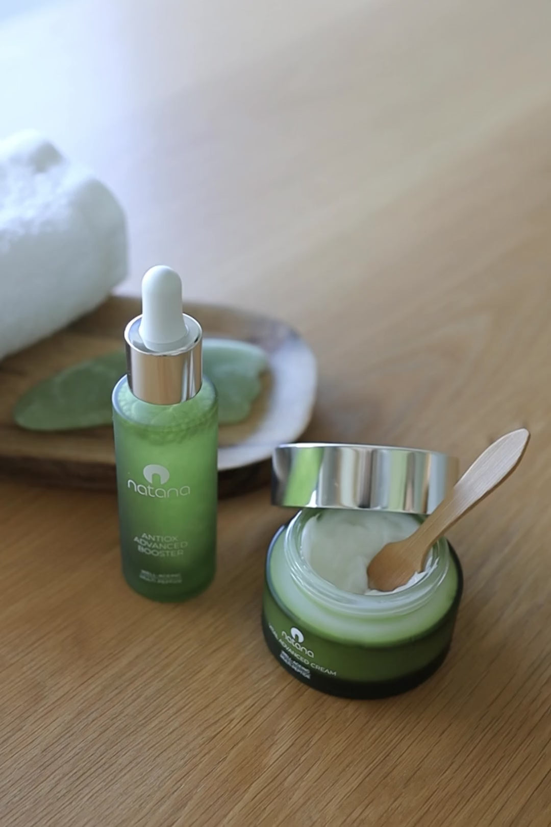 - Paso 1: ANTIOX ADVANCED BOOSTER incorporan como activo principal un complejo de péptidos para que actúen como mensajeros para que la piel recupere su acción regenerativa